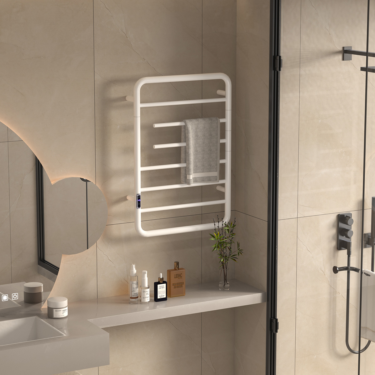 8桿時(shí)控開(kāi)關(guān)電熱毛巾架 8 bar time switch heated towel rail 材質(zhì)Material:SS201/SS304 功率Power:220V/120W 表面Surface:White Painted 白色噴塑 尺寸Size:550*110*800mm 包裝Ctn size:570*130*830mm
