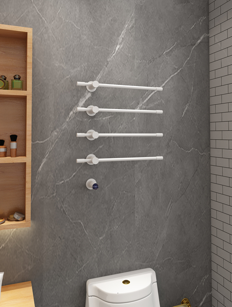 單桿預埋觸屏開關(guān)電熱毛巾架 Single lever embedded touch screen switch heated towel rack 材質(zhì)Material:SS201/SS304 功率Power:220V/75W 表面Surface:White Painted 白色噴塑 尺寸Size:590*85*648mm 包裝Ctn size:940*110*440mm